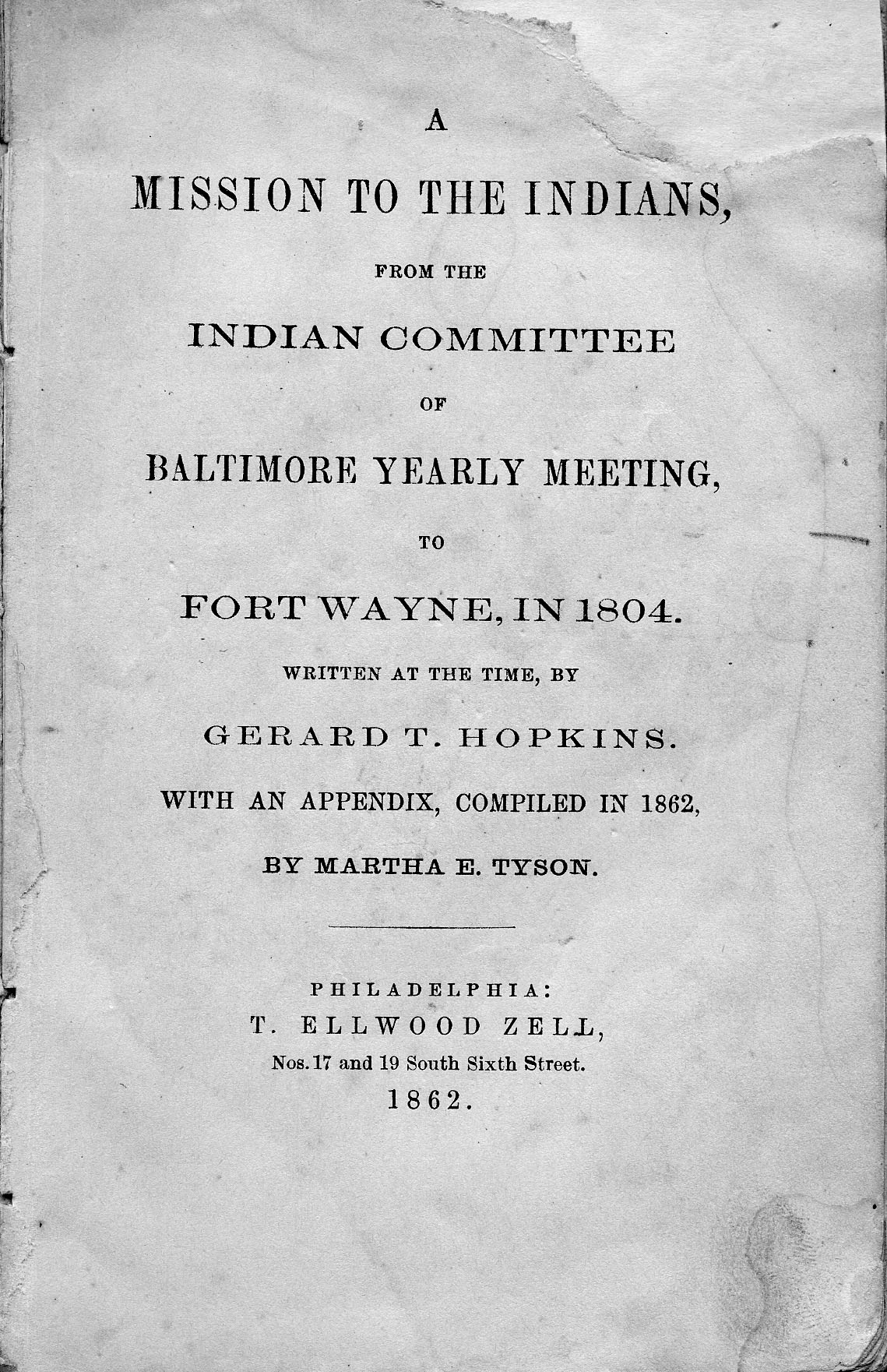 A Mission to the Indians from the Indian Committee of Baltimore Yearly Meeting to Fort Wayne, in 1804