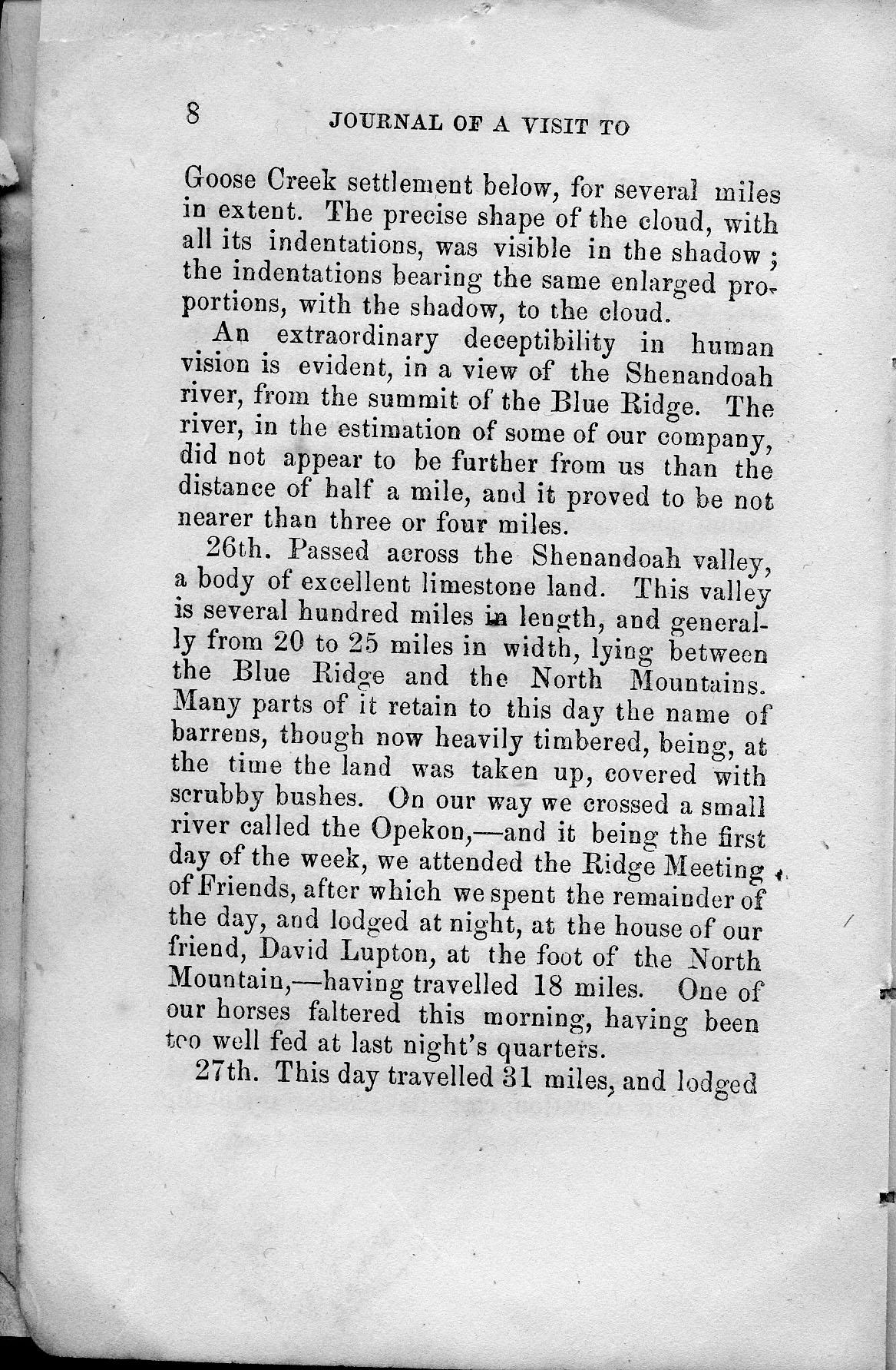 Passed across the Shenandoah valley,