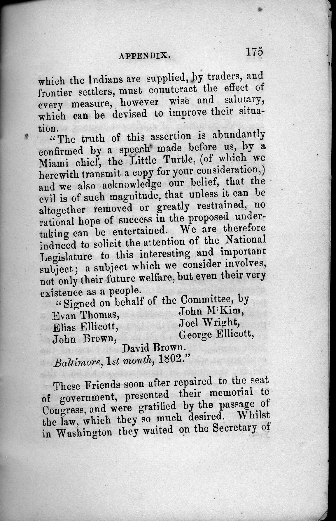 existence as a people. Signed on behalf of the Committee, by Evan Thomas,
