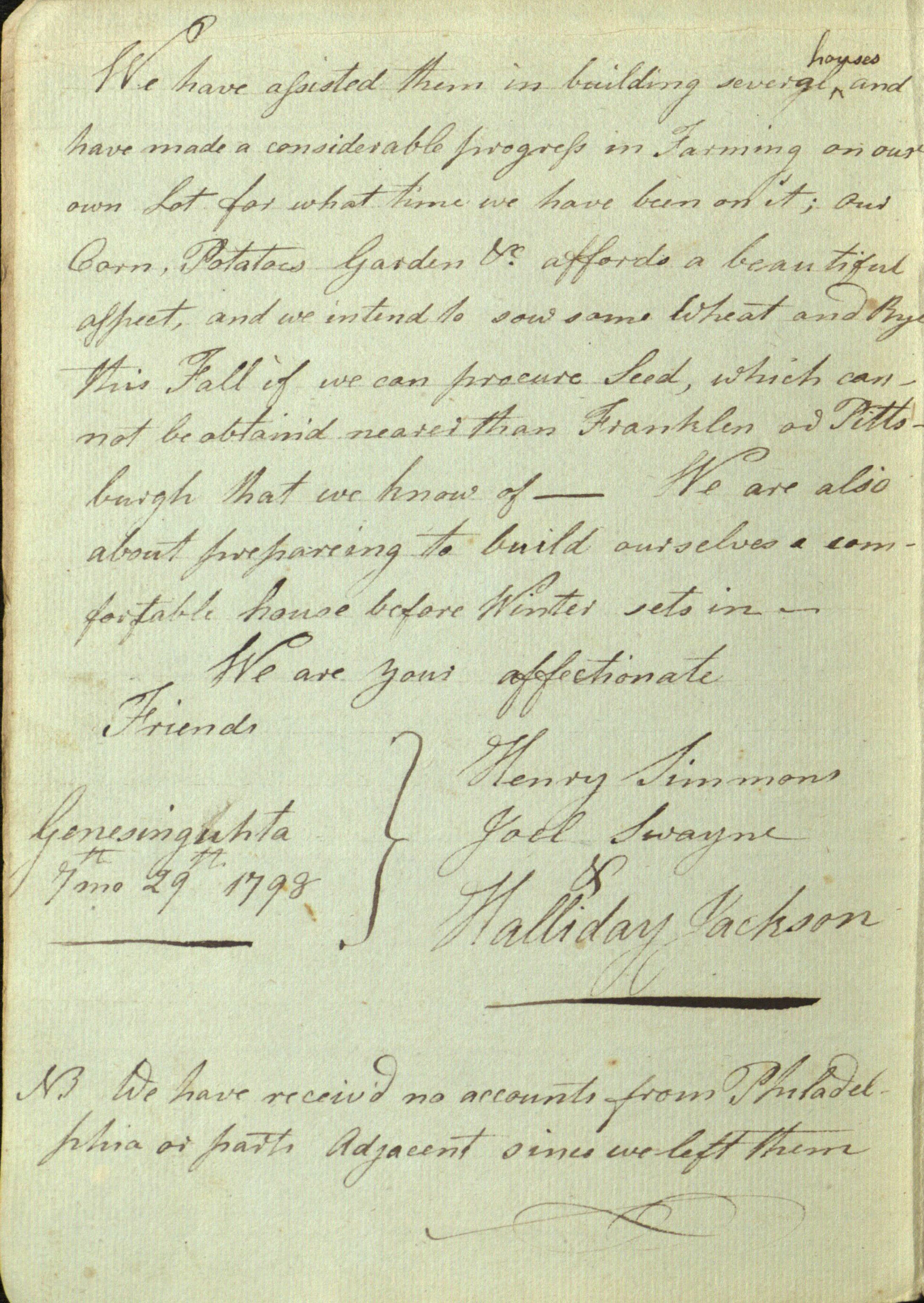 fortable house before Winter sets in We are your affectionate Friends Genesinguhta