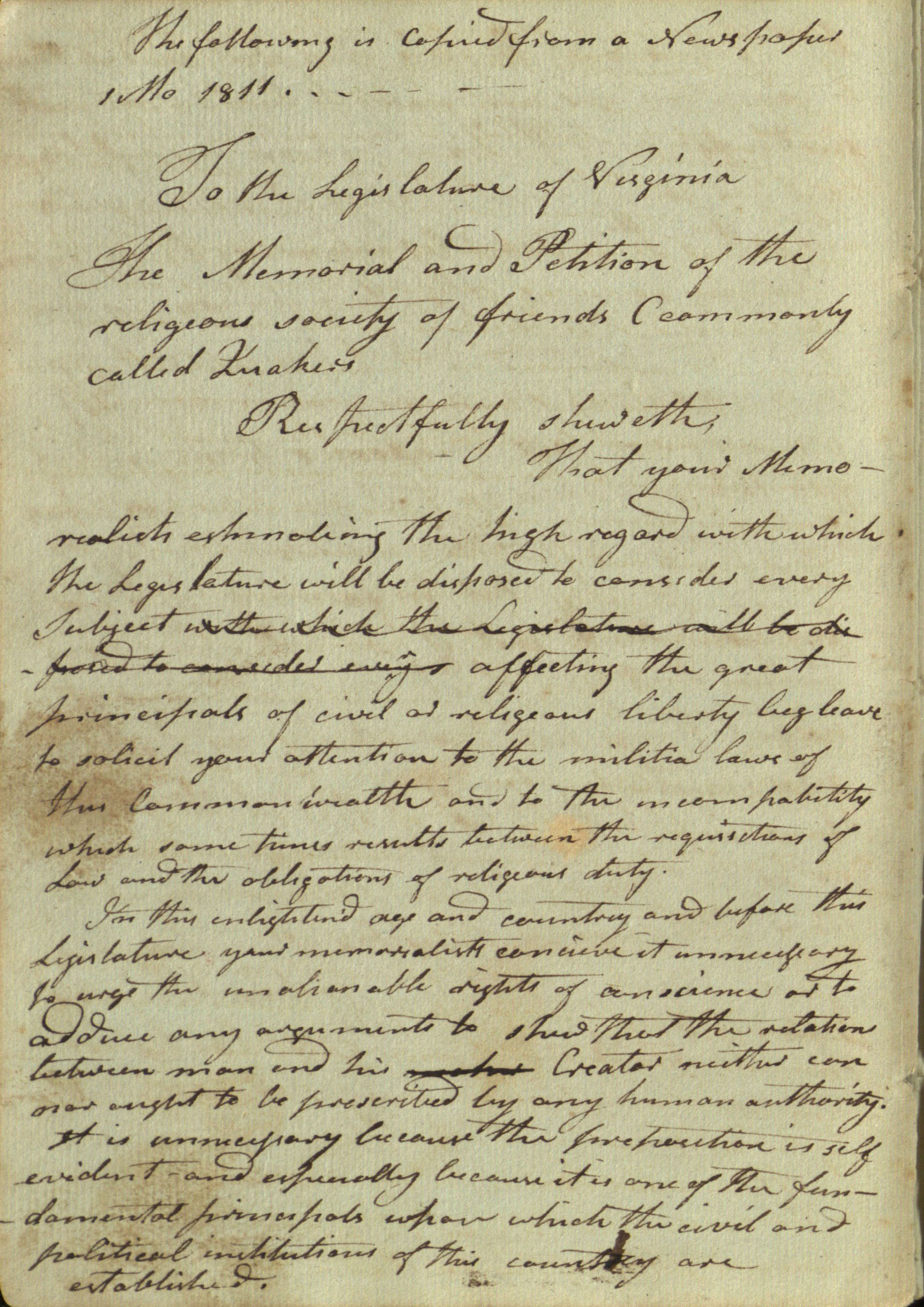 1 mo. 1811 To the Legislature of Virginia