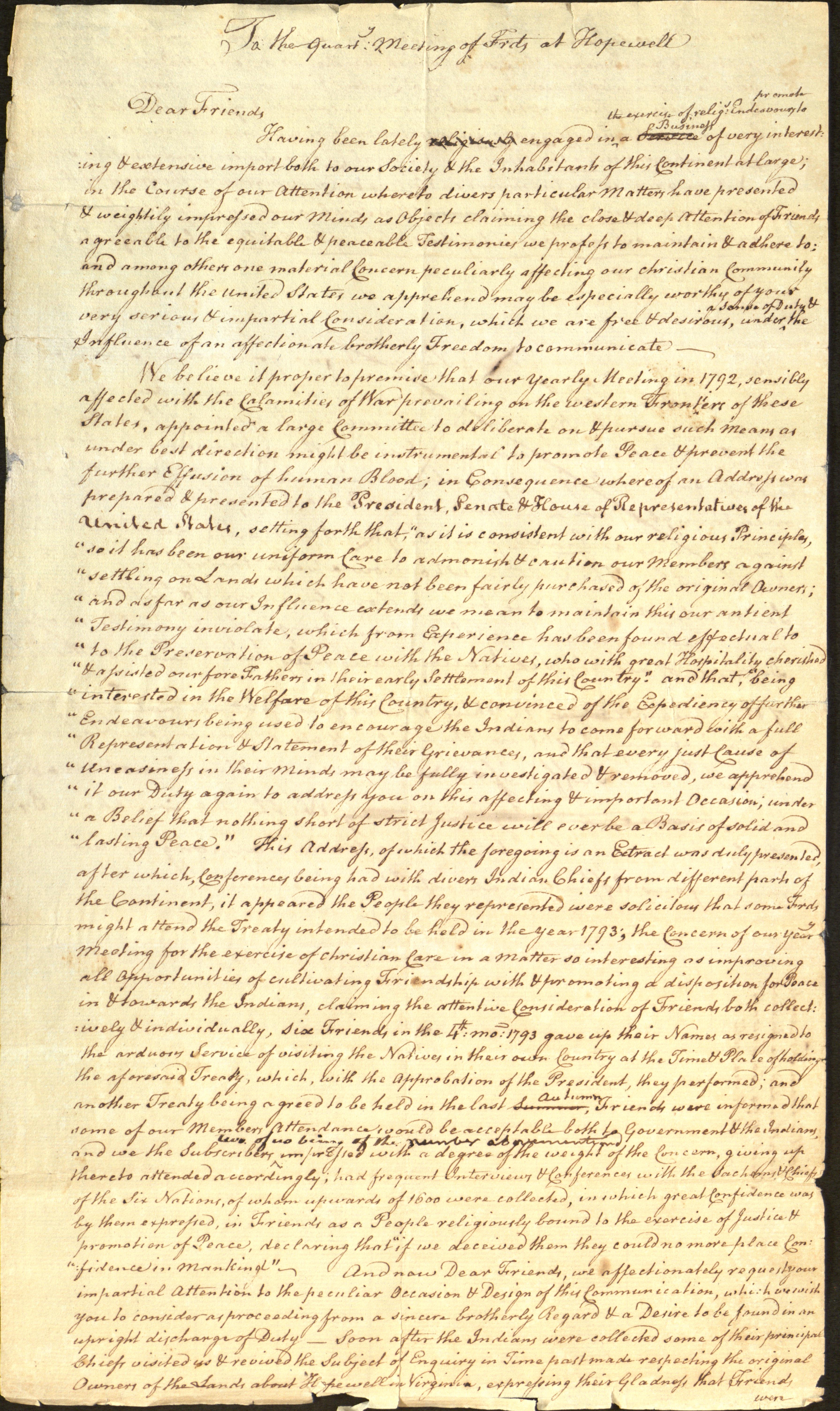 Owner of the Lands about Hopewell in Virginia, expressing their Gladness that Friends
