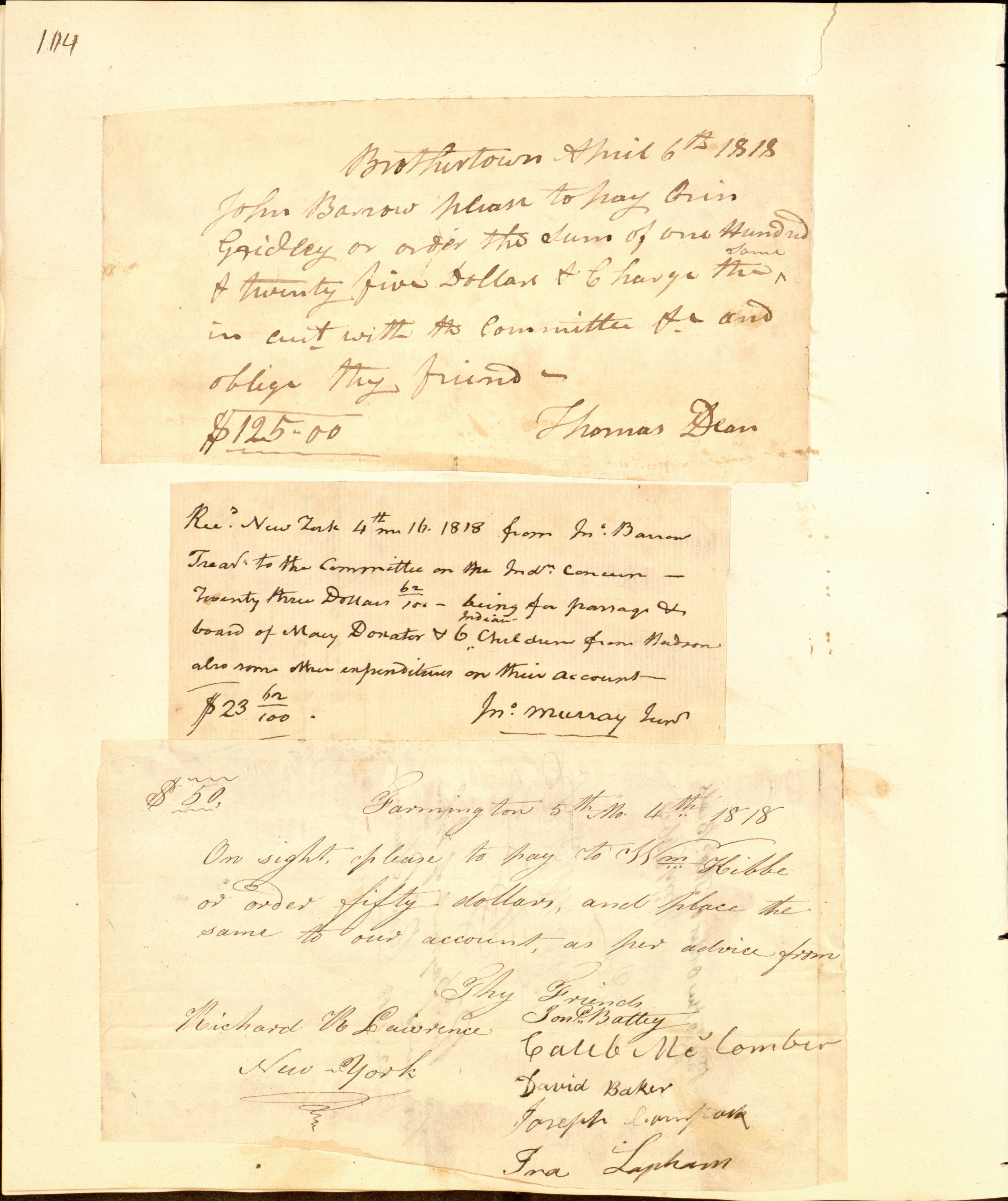 Treas. to the Committee on the Ind. Concern. & 6 Indian Children from Hudson