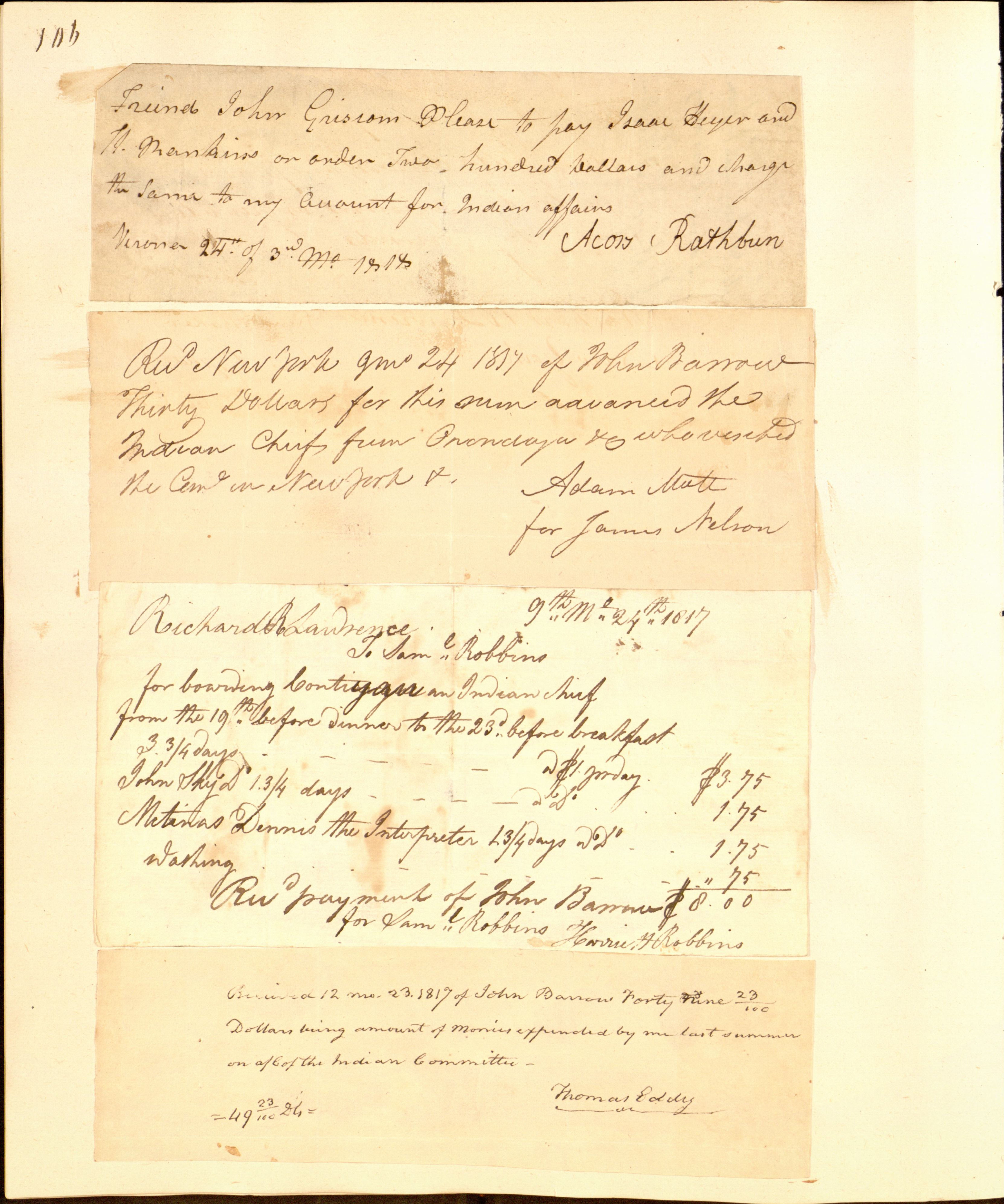 Recieved 12 mo. 23. 1817 of John Barrow