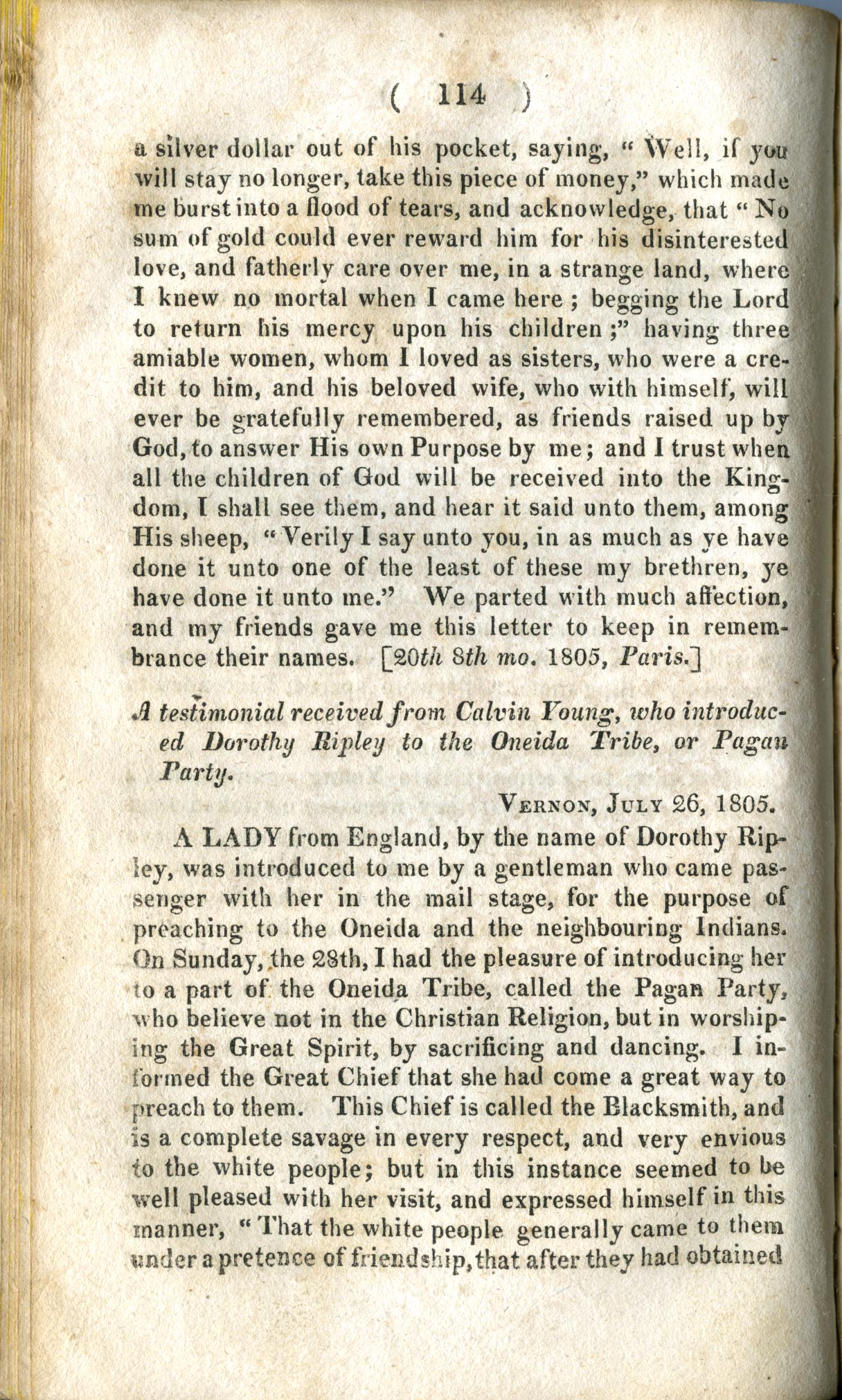 ed Dorothy Ripley to the Oneida Tribe, or Pagan