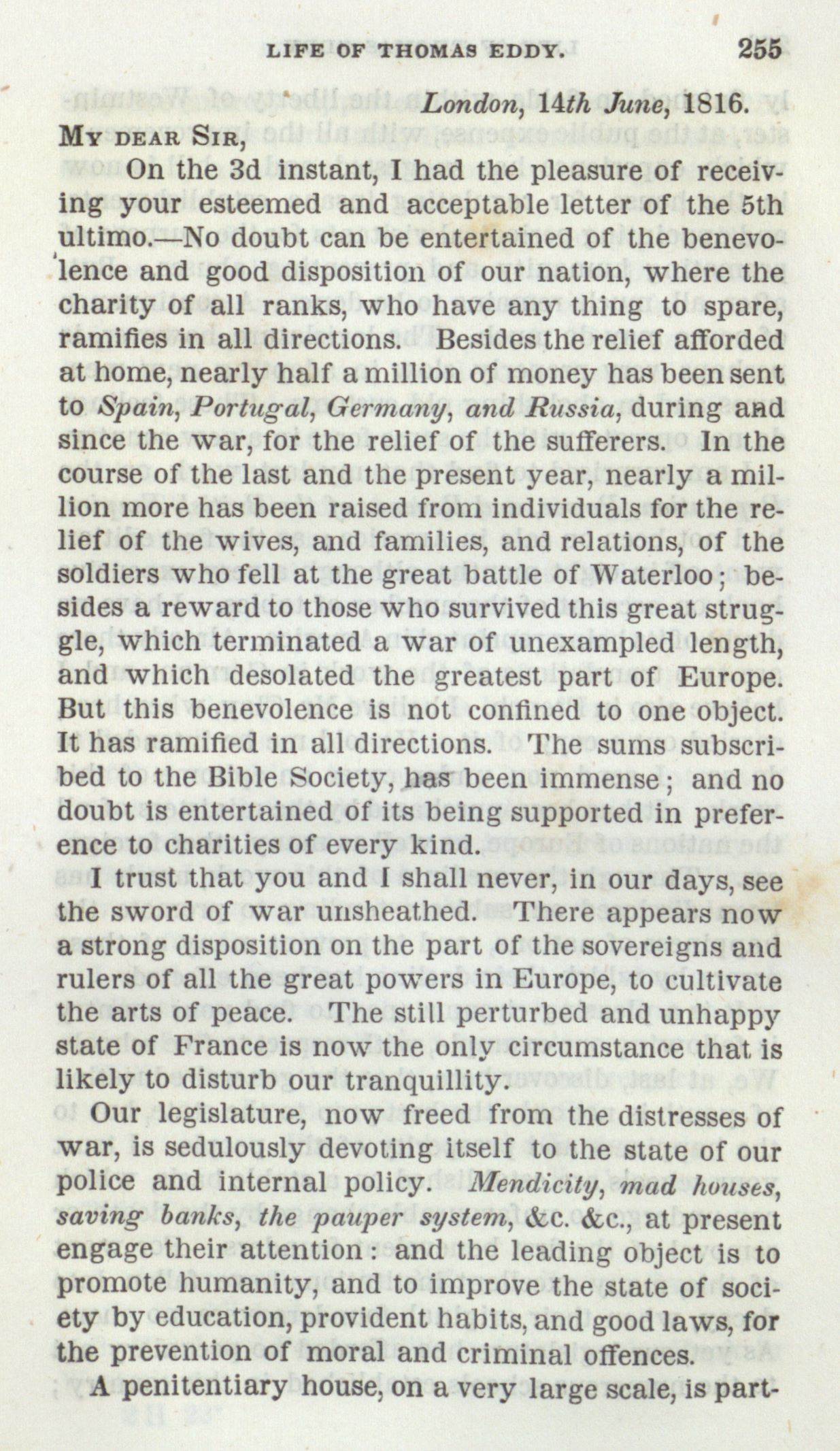 since the war, for the relief of the sufferers. In the