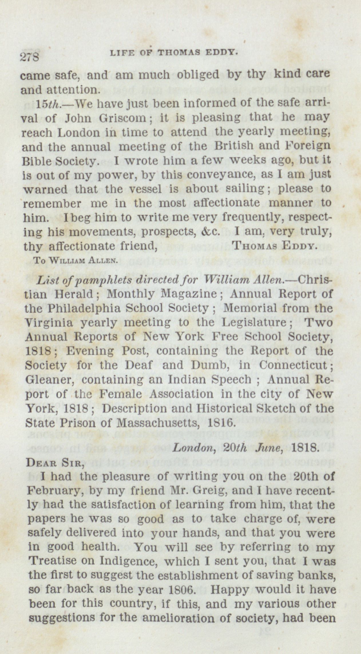 thy affectionate friend, THOMAS EDDY