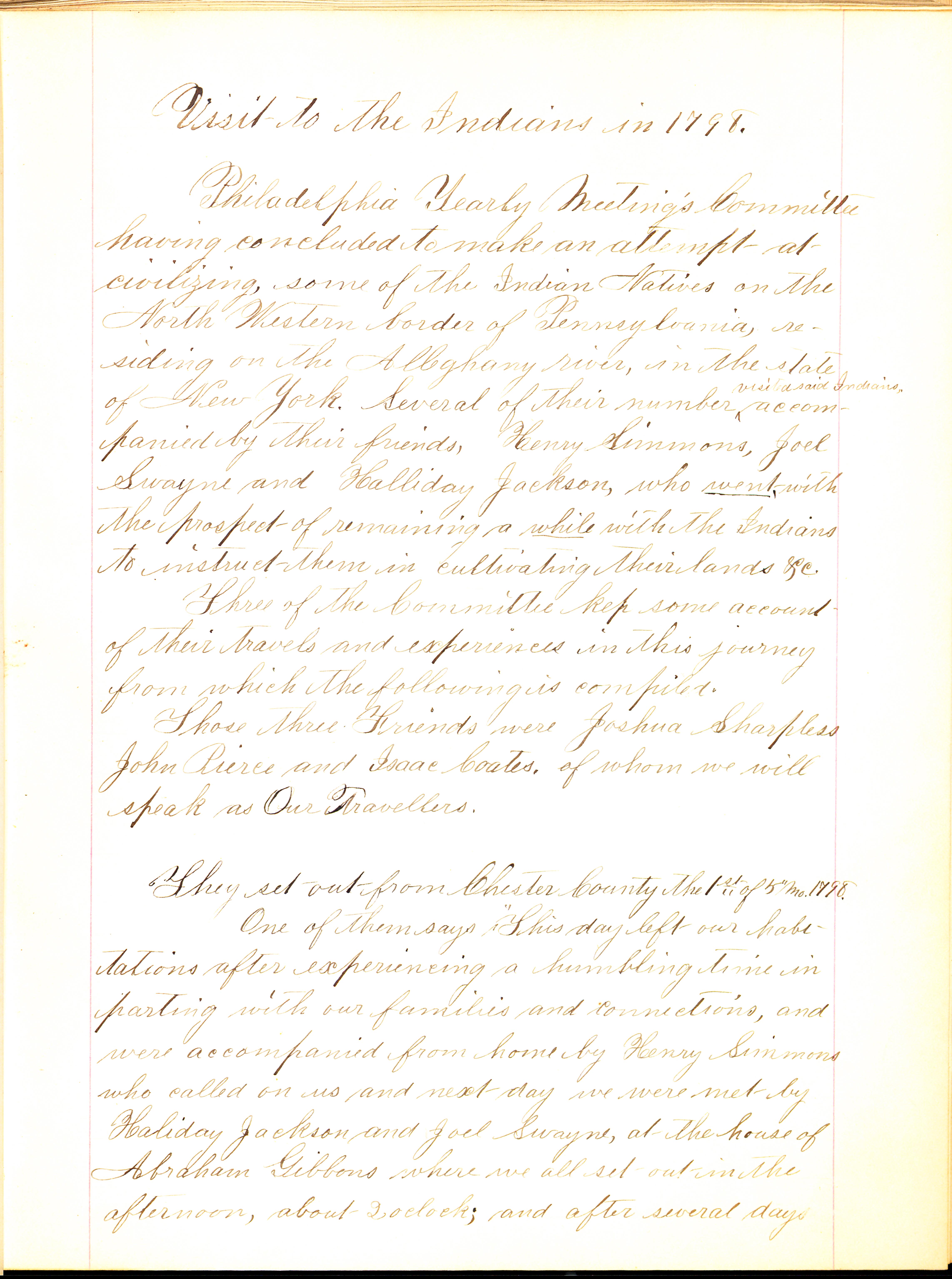 They set out from Chester County the 1st of 5th Mo. 1798.