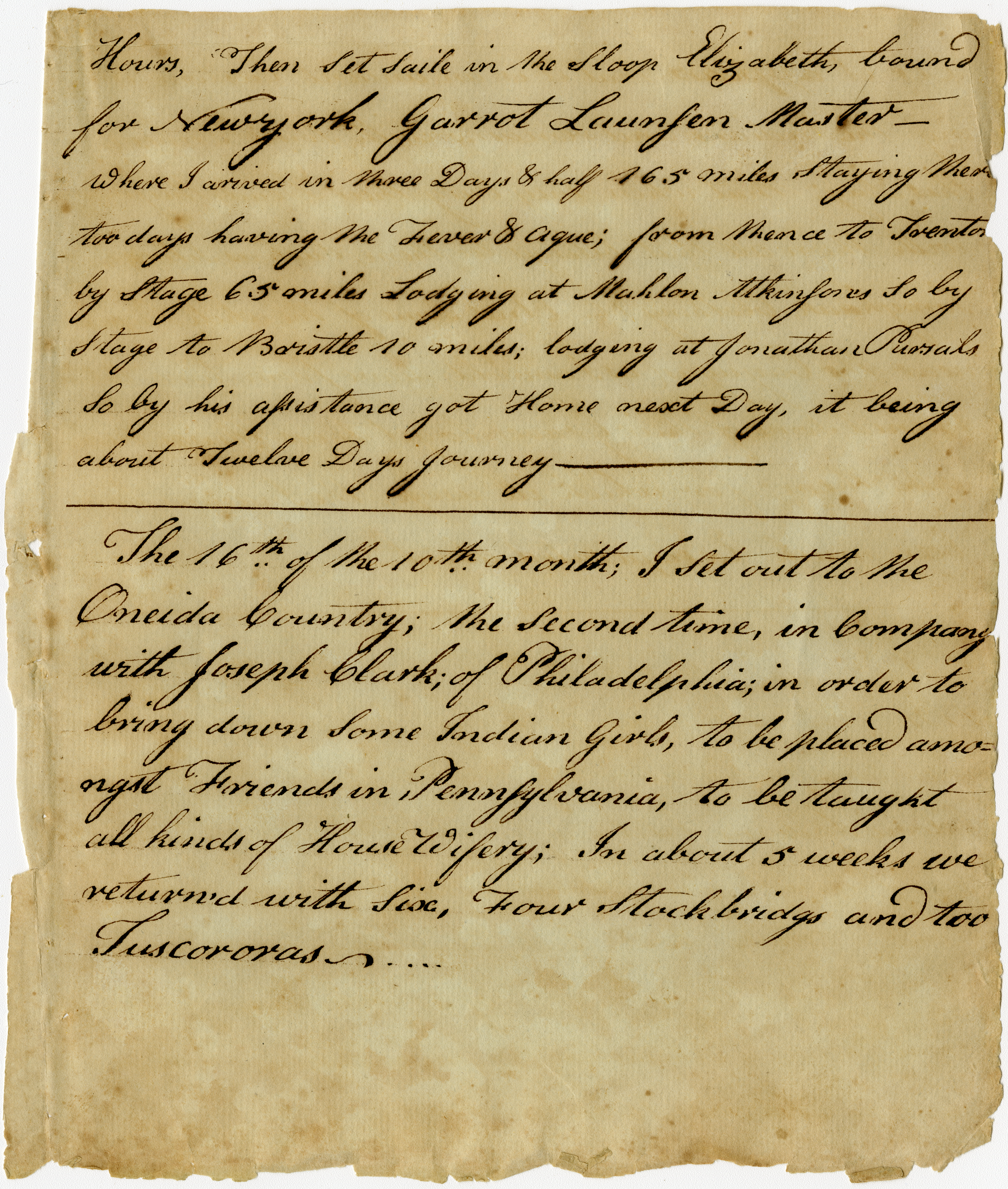Hours, Then Set saile in the Sloop Elizabeth, bound