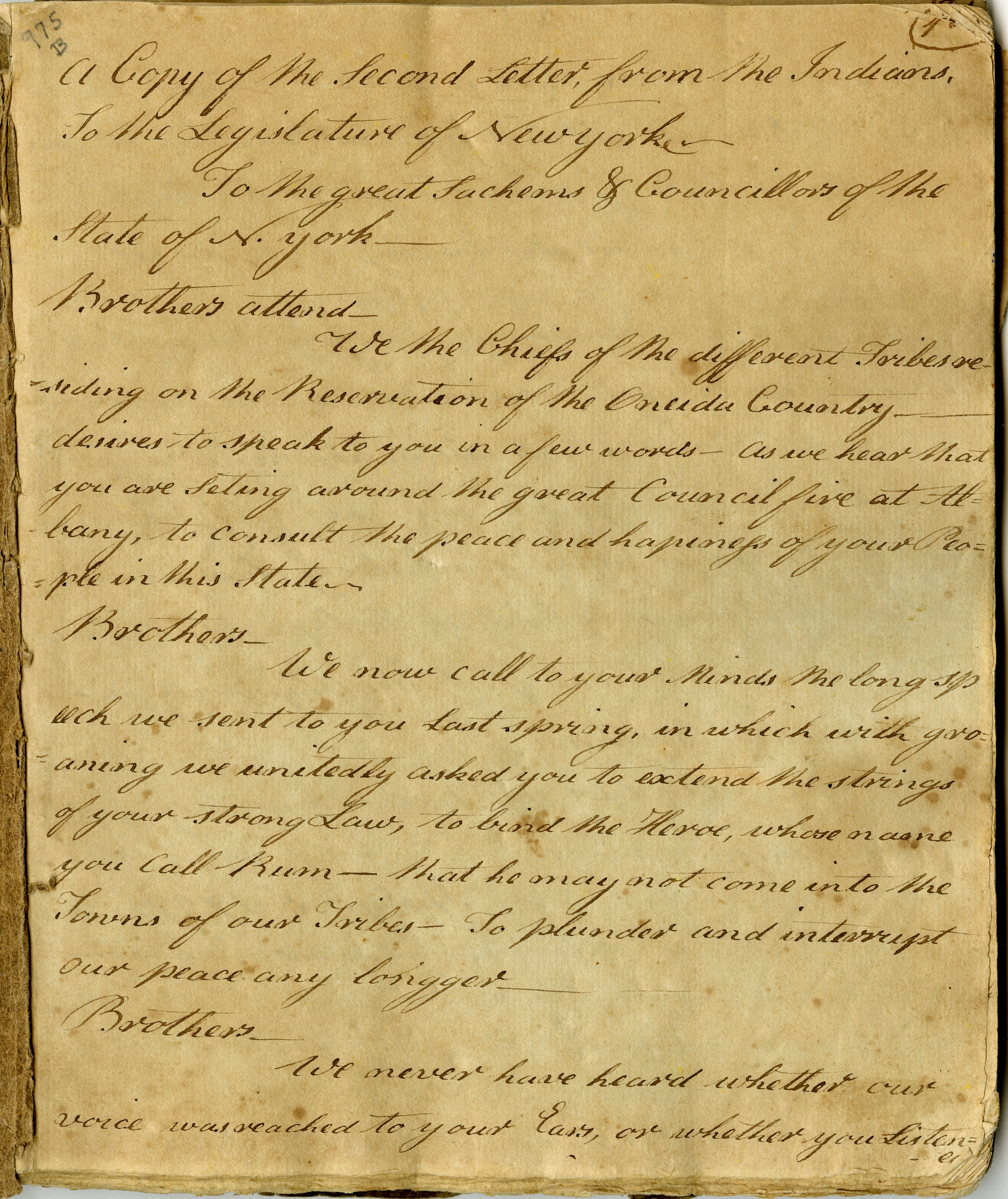 To the great Sachems & Councillors of the