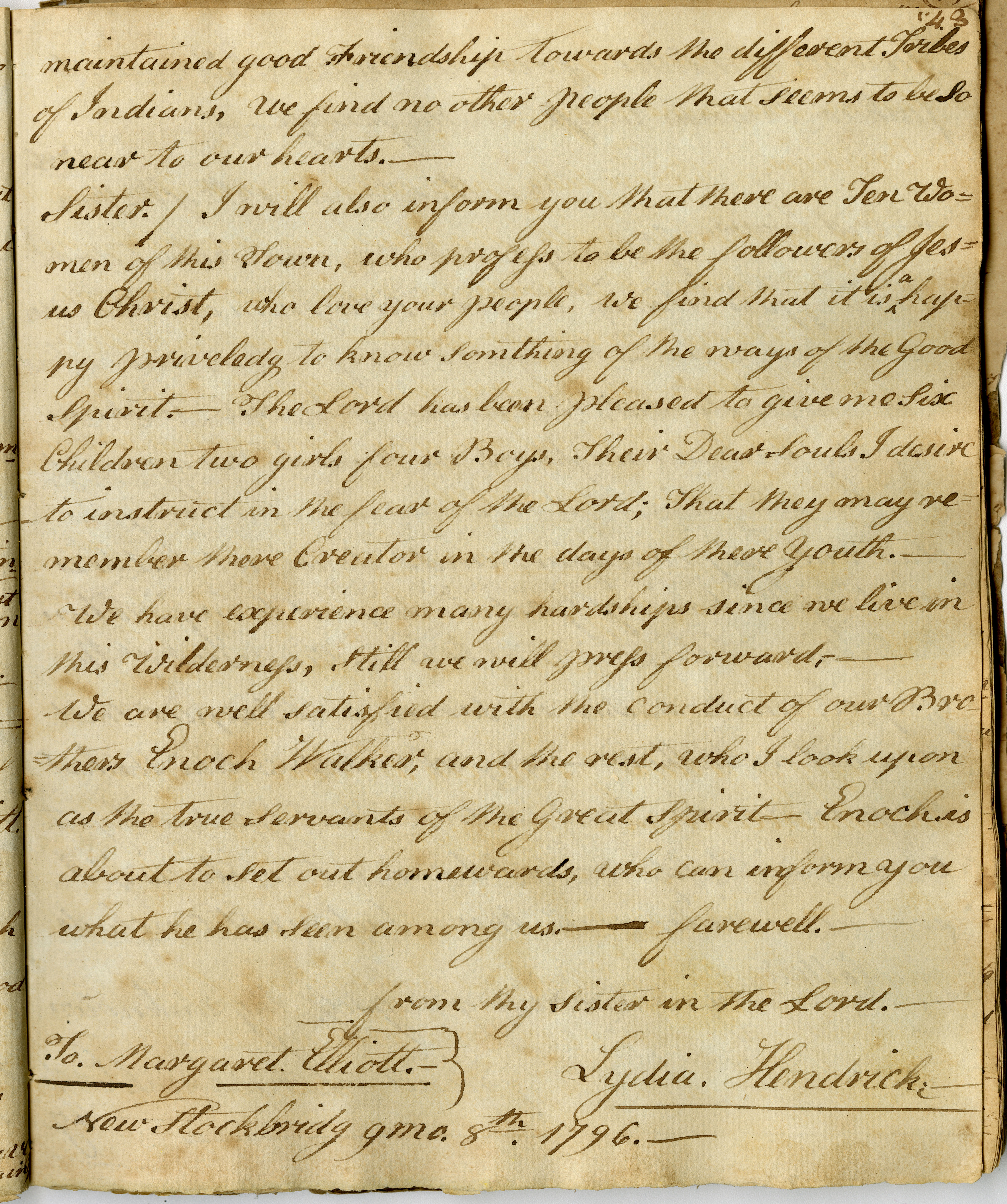 New Stockbridg 9 mo. 8th 1796