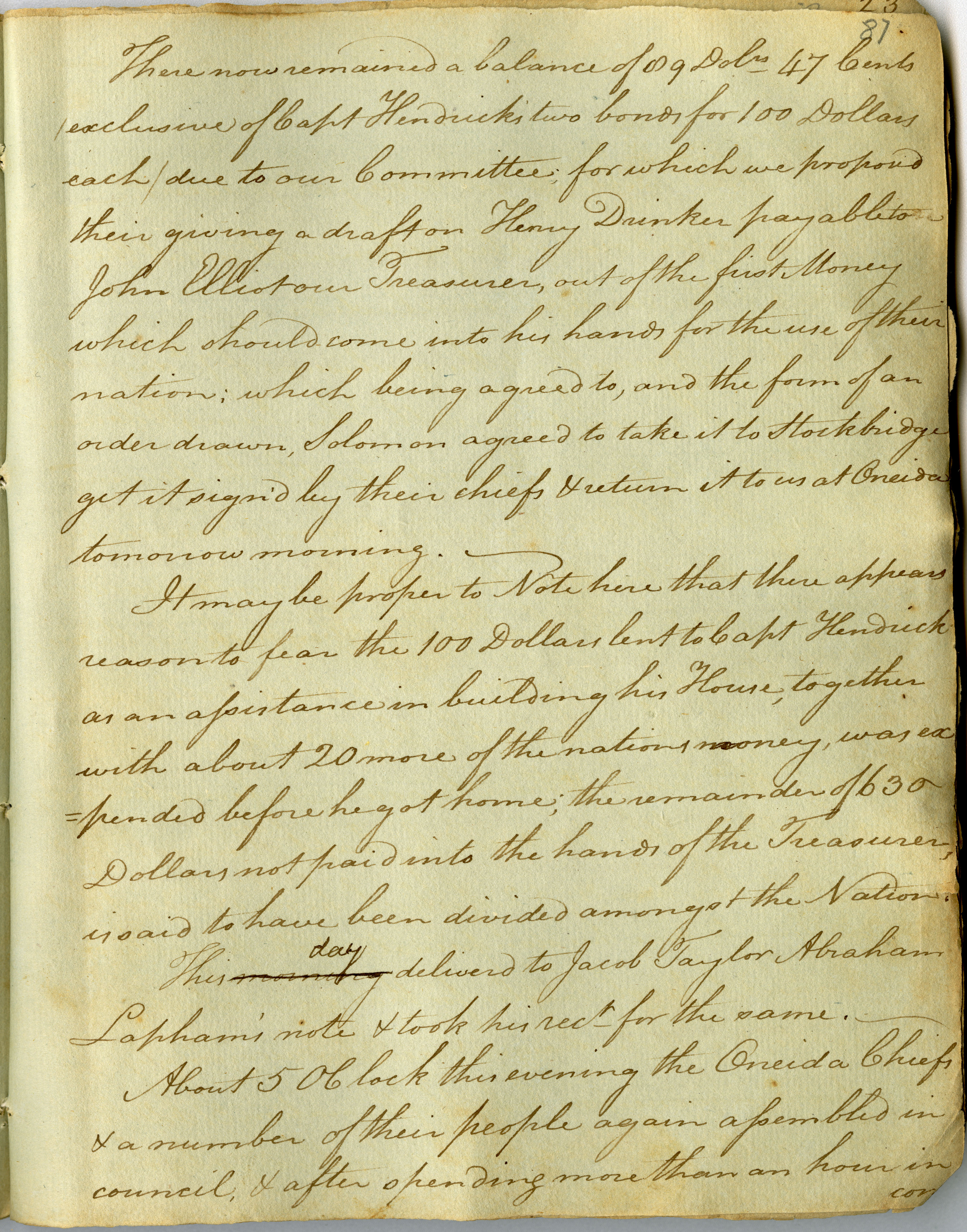 reason to fear the 100 Dollars lent to Capt Hendrick